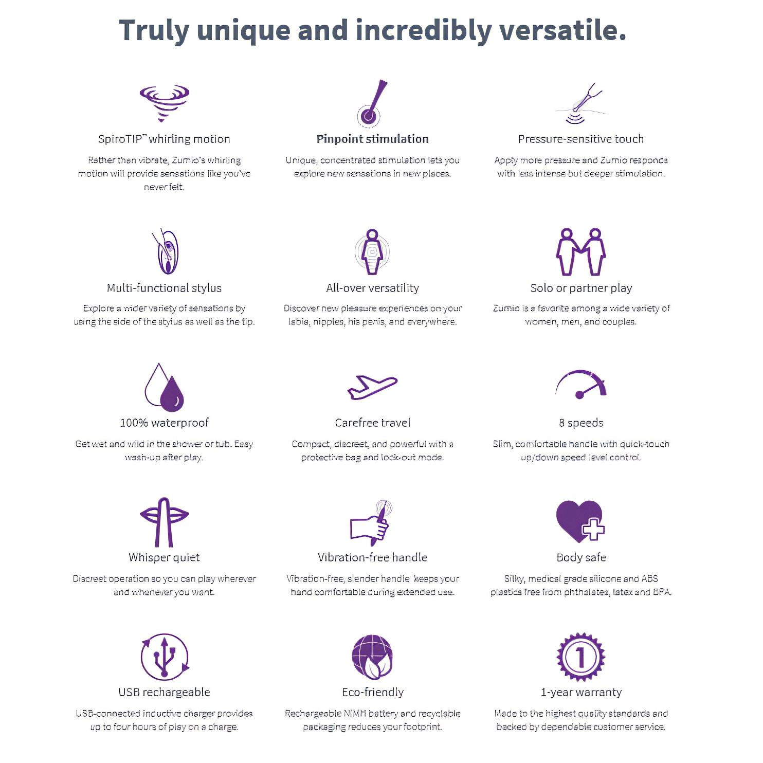 Kako se koristi?Stavi malu količinu lubrikanta na bazi vode na klitoris, zatim stavi SpiroTIPTM vrh direktno na željeno mesto. Male kružne pokrete nežno stimulišu osetljive zone, a možeš postepeno povećavati intenzitet kako bi svaki put bio poseban doživljaj.